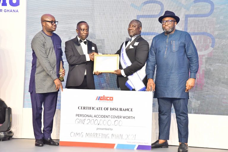 Daniel Wilson Addo, Managing Director of Consolidated Bank Ghana (CBG), receiving his award as “Marketing Man of the Year 2021” …
