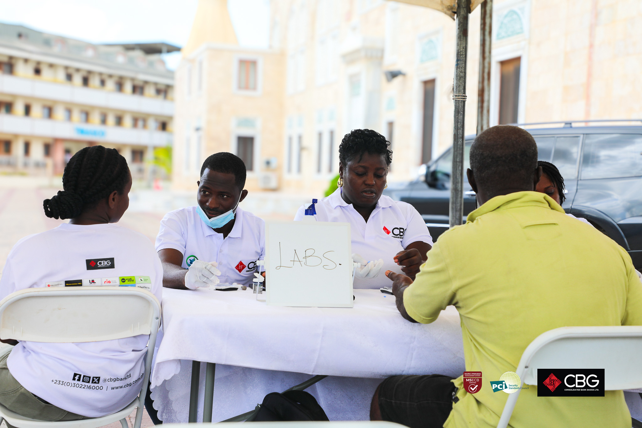 Consolidated Bank Ghana Ltd. (CBG) has organized a community health outreach at the National Mosque in Kanda, offering free screenings for blood pressure, blood sugar and cholesterol to residents of the community and the general public.